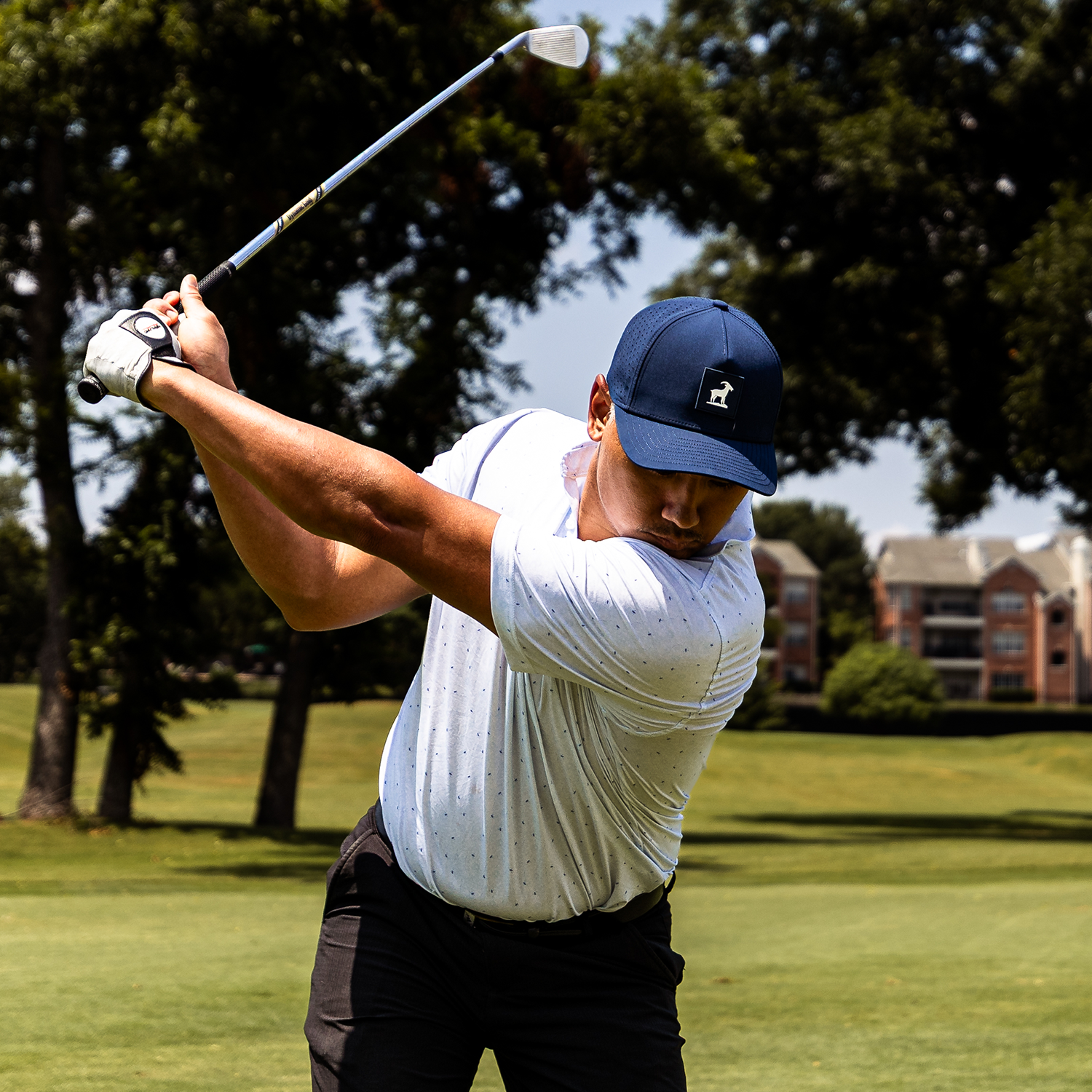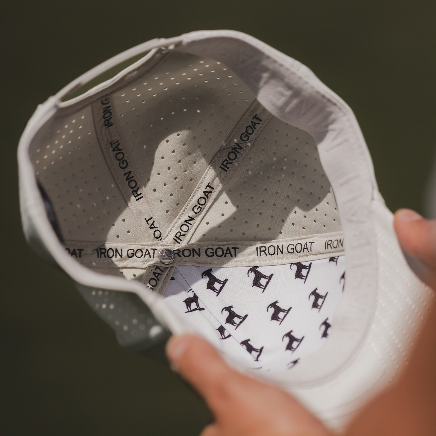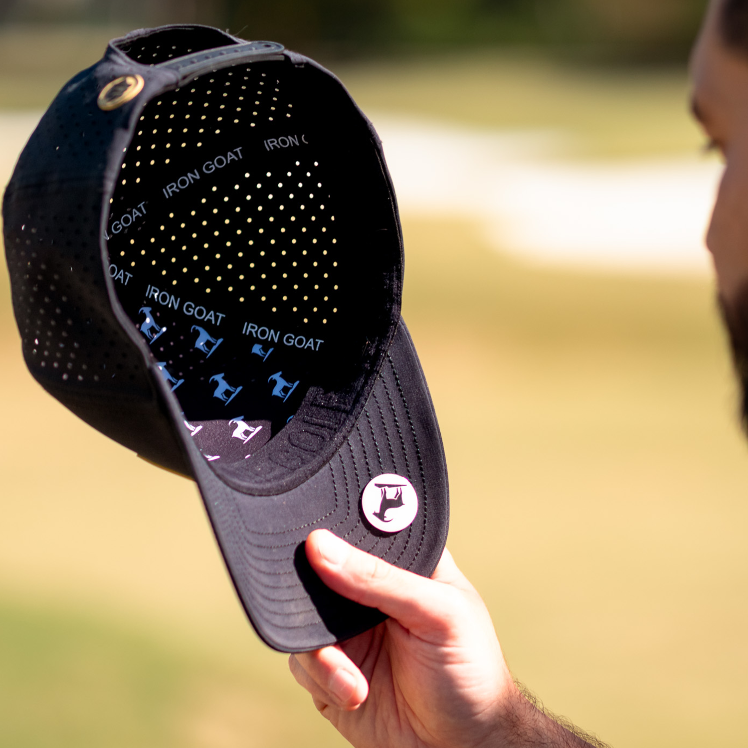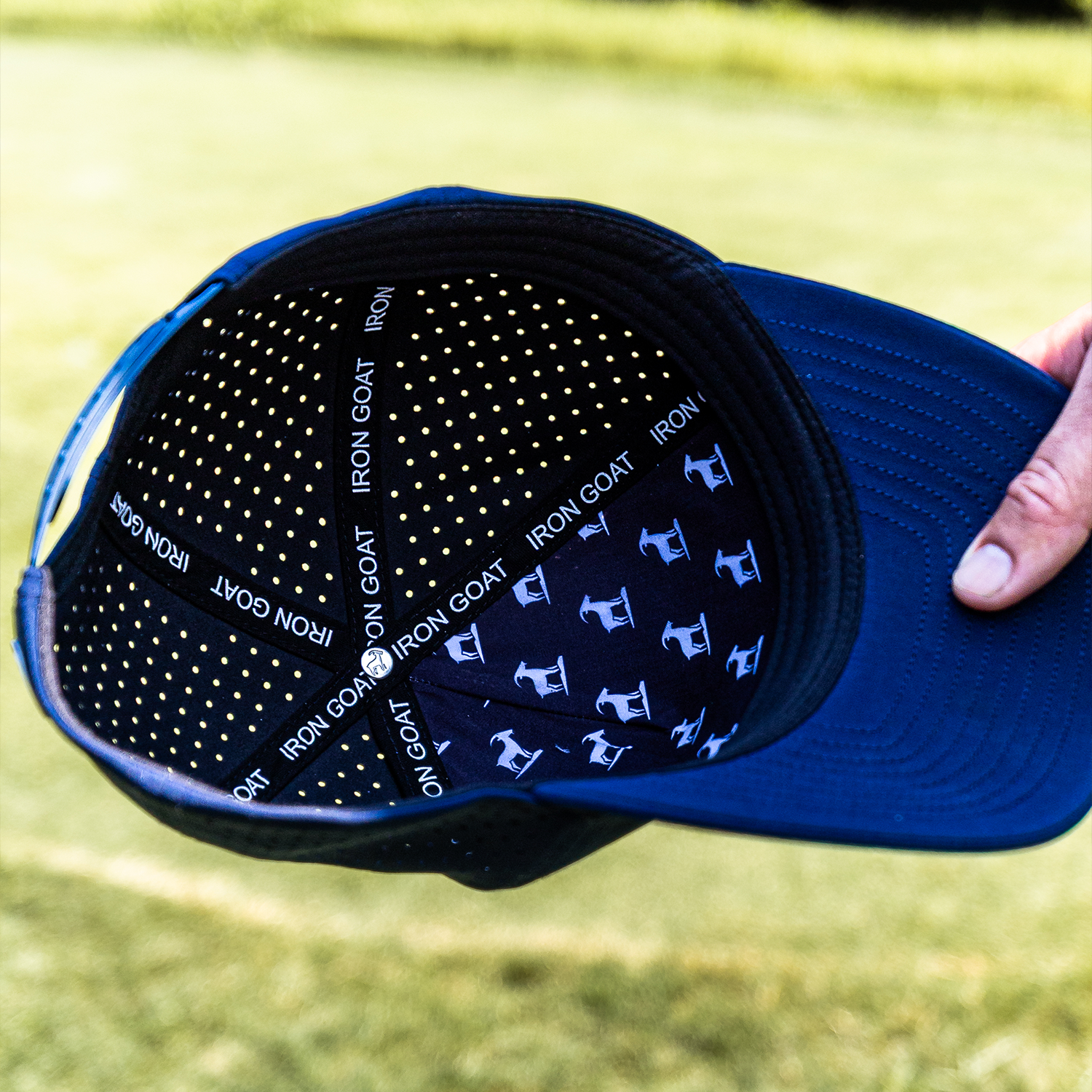 The Iron Goat Hat does abetter job than any other hatat fighting sweat. With a double-layer sweatband and water-repellent fabric, golfers in Texas and Florida say it’s the first hat they’ve worn through 18+ holes without ugly salt stains showing.