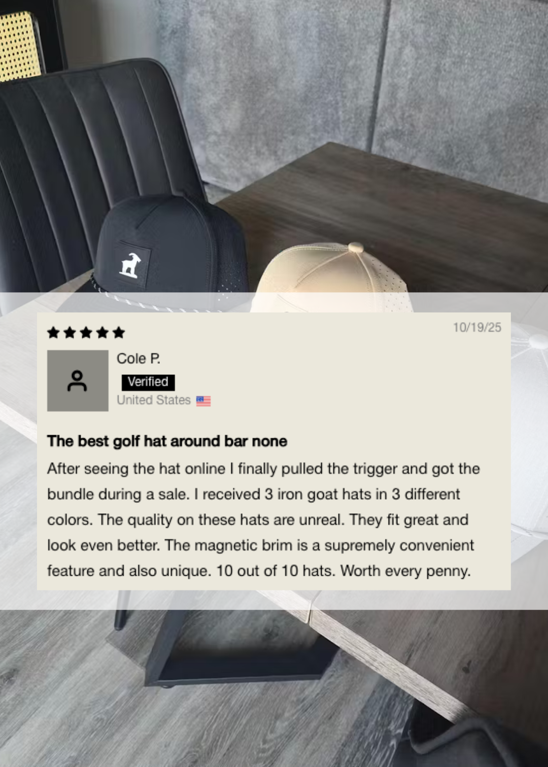 Real messages from golfers who switched to the Iron Goat Hat.